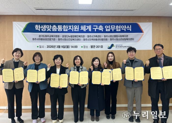 (누리일보) 경기도파주교육지원청은 3월 9일, 복합적인 위기 상황에 놓인 학생을 위한 맞춤형 통합 지원체계 구축을 위해 관내 7개 지역기관과 함께 업무협약을 체결했다.
