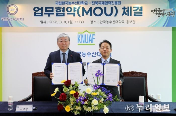 (누리일보) 한국농수산대학교는 3월 9일 오전 11시 한농대 본관에서 전북국제협력진흥원과 국제농업교육 협력 등을 위한 업무협약을 체결했다.