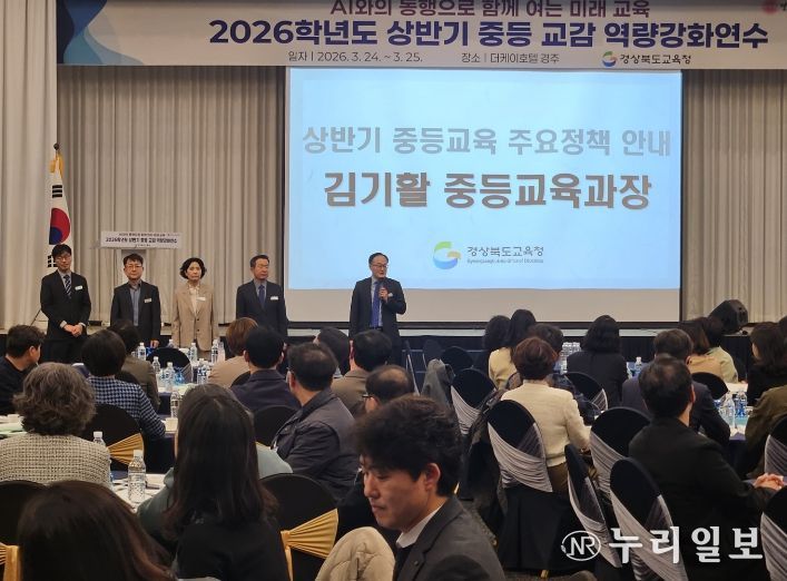 (누리일보) 경북교육청은 24일부터 25일까지 이틀간 경주시에 있는 더케이호텔경주에서 도내 중등 교감 350여 명을 대상으로 ‘2026학년도 상반기 중등 교감 역량 강화 연수’를 개최했다고 밝혔다.
