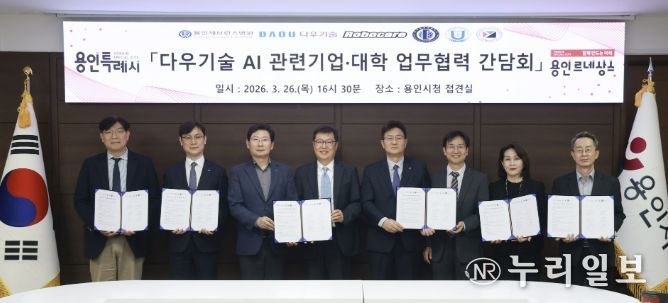 (누리일보) 용인특례시는 26일 ㈜다우기술, 지역내 대학, 병원, 인공지능산업 관련 기업 관계자들과 ‘지역 AI 및 벤처기업 육성을 위한 사무공간 무상제공 수요처 간담회’를 개최했다.