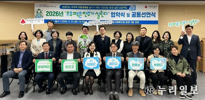 (누리일보) 경상국립대학교 지속가능발전센터(센터장 김영철 회계세무학부 교수)와 진주시평거종합사회복지관(관장 김순자)은 3월 31일 오후 2시 진주시평거종합사회복지관 분관 3층 강당에서 자원순환 프로그램 개발과 협력 강화를 위한 업무협약을 체결했다.