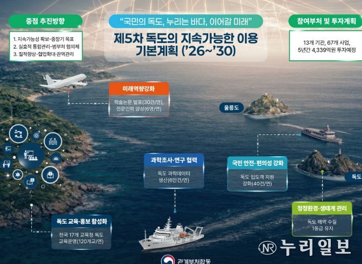 (누리일보) 경상북도는 정부가 발표한 ‘제5차 독도의 지속가능한 이용을 위한 기본계획’과 2026년 시행계획에 발맞춰 독도의 실질적 관리주체로서 현장중심의 정책을 본격 추진한다.