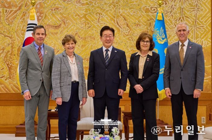 (누리일보) 이재명 대통령은 4월 2일 오후 청와대에서 진 섀힌(Jeanne Shaheen) 상원 외교위원회 간사 등 공화·민주 양당 의원으로 구성된 미국 상원의원 대표단을 접견했다. 이 대통령과 미 대표단은 한미동맹 및 한반도 문제를 비롯해 중동 전쟁의 안보적·경제적 파장과 대응 방안에 대해 심도 있는 의견을 교환하고, 향후 경제적 여파 대응 과정에서 한미가 긴밀히 소통해 나가는 것이 중요하다는 점에 뜻을 같이 했다.