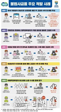 특히 미성년자(고3)가 온라인을 통해 37명을 상대로 불법 대출을 해주고 수고비, 지각비 등의 명목으로 고금리를 수취한 사례도 있었다.