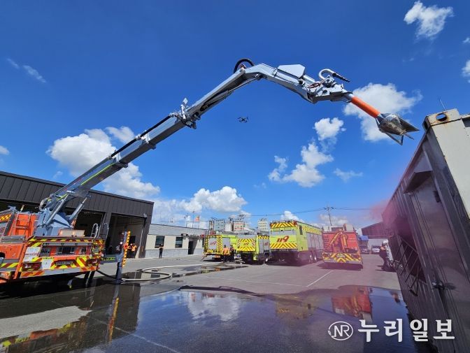 이날 훈련에서는 컨테이너를 활용해 실제 화재 상황을 재현하며 ▲창문 파괴를 통한 수평배연 및 분무방수 ▲천장 파괴를 통한 수직배연 및 분무방수 ▲원격 직사주수에 의한 일제방수 등 주요 기능이 단계별로 선보였다. 사용된 컨테이너는 폭 2.6m, 길이 6m, 높이 2.6m 크기로, 두께 2mm 철판을 적용해 실제 건축물과 유사한 환경을 구현했다.