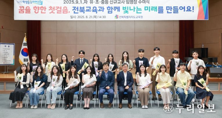 (누리일보) 전북특별자치도교육청은 21일 도교육청 강당에서 2025학년도 9월 1일자 신규교사 임명장 수여식을 개최했다.