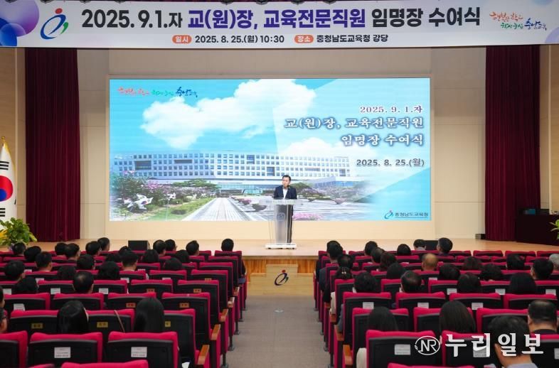 (누리일보) 충남교육청은 지난 25일 2025.9.1.자 인사 발령에 따른 교(원)장, 교육전문직원에 대하여 임명장을 25일(월) 도교육청 대강당에서 수여했다.