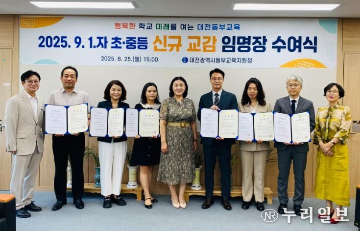 (누리일보) 대전동·서부교육지원청은 8월 25일 2025. 9. 1.자 인사발령에 따른 유·초·중등 신규 교(원)감 임명장 및 인사발령통지서 수여식을 실시했다.