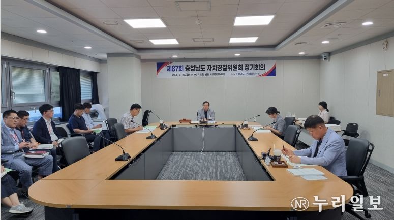(누리일보) 충남도 자치경찰위원회는 25일 도청 별관에서 제87차 자치경찰위원회 정기회의를 열고, 관계성 범죄 대응 강화 및 생활 질서 확립을 위한 종합 대책을 심의·의결 및 접수했다.