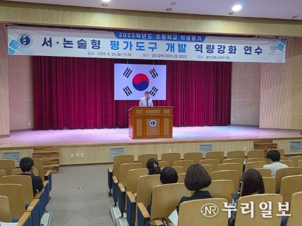 (누리일보) 대전시교육청 대전교육과학연구원은 8월 25일 초등학교 서·논술형 평가도구 개발위원과 검토위원, 초등 교원을 대상으로 초등학교 서·논술형 평가도구 개발 역량강화 연수를 실시했다.