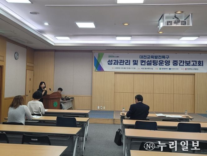 (누리일보) 대전시는 8월 26일 시청 3층 세미나실에서‘대전교육발전특구 성과관리 및 컨설팅운영 중간보고회’를 열고, 57개 시행과제의 추진실적과 우수사례를 공유하며 78개 성과지표 달성도를 점검했다.