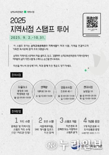 (누리일보) 삼척교육문화관은 8월 26일부터 12월 31일까지 지역서점과의 연계를 통해 독서문화 확산과 지역경제 활성화를 도모하는 ‘지역서점 연계 독서문화진흥 프로그램’을 운영한다.