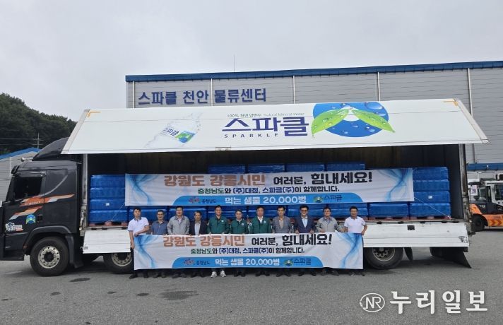 (누리일보) 충남도는 26일 최근 극심한 가뭄으로 식수난을 겪고 있는 강원도 강릉시에 도내 먹는샘물 업체인 ㈜대정과 스파클㈜의 협조를 받아 생수 2만병(22톤)을 긴급 지원했다고 밝혔다.