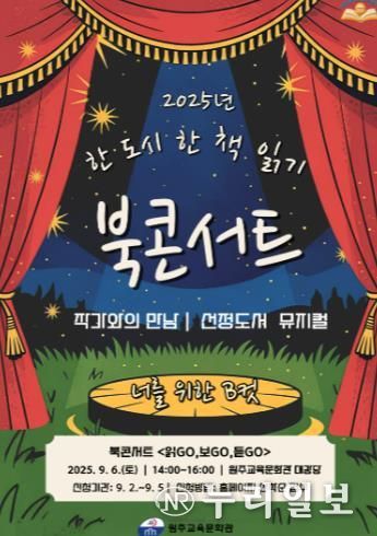 (누리일보) 원주교육문화관은 9월 6일 원주교육문화관 대강당에서 지역 주민을 대상으로 원주 한 도시 한 책 읽기 북콘서트 ‘읽고(GO)보고(GO)듣고(GO)’를 개최한다.
