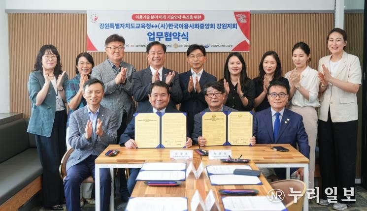 (누리일보) 강원특별자치도교육청은 27일 오후 1시 강원특별자치도교육청 접견실에서 (사)한국이용사회중앙회 강원지회와 ’이용기술 인재 육성을 위한 업무협약식을 개최했다.