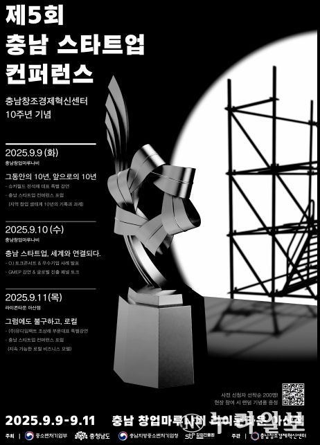 충남혁신센터 강희준 대표이사는 “이번 컨퍼런스는 지난 10년의 발자취를 돌아보고, 앞으로 10년간 충남이 대한민국 창업의 중심지로 도약할 수 있는 비전을 함께 그려나가는 자리”라며 “스타트업, 투자자, 지자체, 유관기관이 서로 연결되고 지역사회와 호흡하는 창업 생태계를 우리 센터가 함께 만들어가겠다”고 전했다.