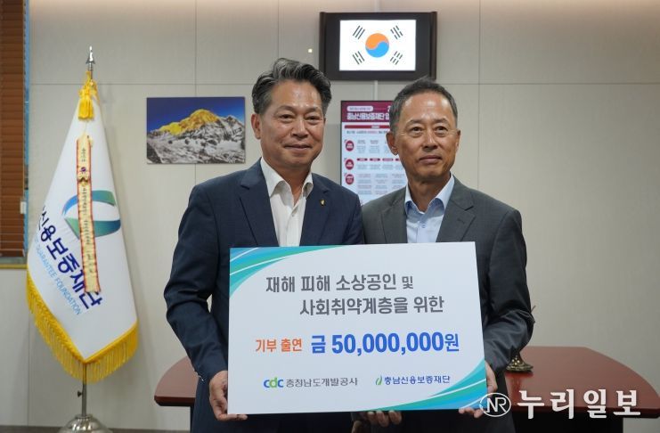 (누리일보) 충남신용보증재단과 충청남도개발공사는 8월 27일 충남신용보증재단 본점에서 충남 지역 수해피해 중소기업 및 소상공인의 보증료 지원을 위한 기부금 전달식을 가졌다고 밝혔다.