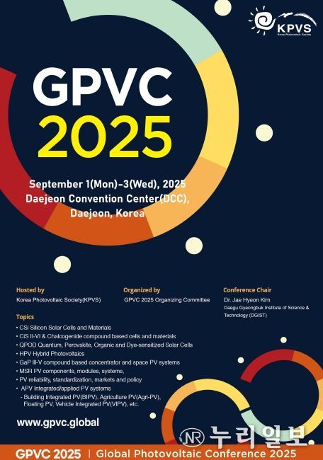 (누리일보) 대전시와 한국태양광발전학회가 공동 주최한 ‘2025 글로벌태양광학술대회(GPVC 2025)’가 9월 1일부터 3일까지 대전컨벤션센터(DCC)에서 열린다.