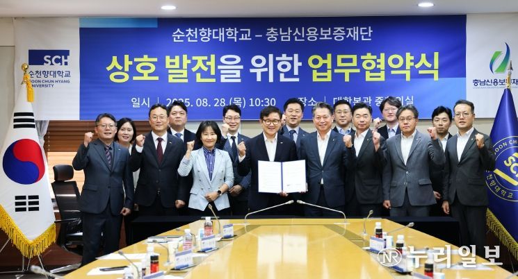 (누리일보) 충남신용보증재단은 8월 28일 순천향대학교와 상호 발전을 위한 업무협약을 체결했다고 밝혔다. 협약식은 순천향대학교 대학본관 3층 중회의실에서 열렸으며, 조소행 이사장과 송병국 총장을 비롯한 양 기관 주요 관계자들이 참석했다.