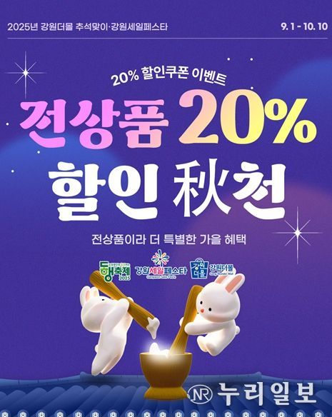 (누리일보) 강원특별자치도의 대표 온라인 쇼핑몰 ‘강원더몰’이 2025년 추석을 맞아 ‘동행축제· 강원세일축제(페스타)’와 함께 9월 1일부터 10월 10일까지 40일간 ‘추석맞이 기획전’을 개최한다.