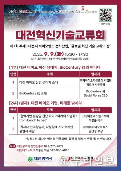 (누리일보) 대전시는 9월 9일 대전신세계 엑스포타워 20층 D-유니콘라운지에서 ‘제7회 대전혁신기술교류회(DITEC)’를 개최한다.