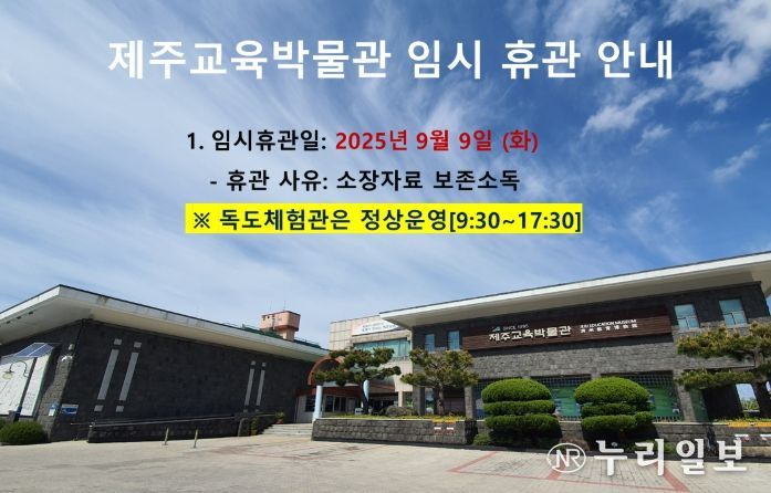 (누리일보) 제주도교육청 제주교육박물관은 오는 9일 소장자료 보존 소독을 위해 임시 휴관한다.