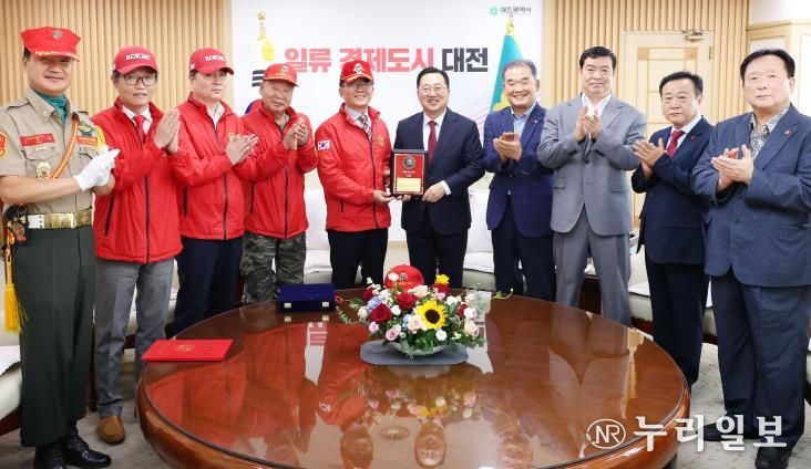 (누리일보) 해병대전우회는 9월 2일 대전시청 10층 응접실에서 이장우 대전광역시장에게 감사패를 전달했다.
