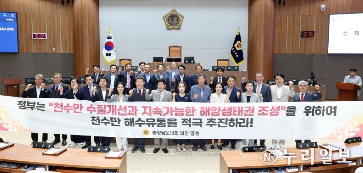 (누리일보) 충남도의회는 2일 제361회 임시회 제1차 본회의에서 정광섭 의원(태안2·국민의힘)이 대표 발의한 '천수만 수질개선과 지속가능한 해양생태권 조성을 위한 해수유통 촉구 건의안'을 채택했다.