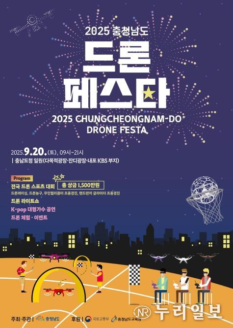 (누리일보) 충남도가 오는 20일 도청 일원에서 ‘2025 충청남도 드론 페스타’를 개최한다고 3일 밝혔다.
