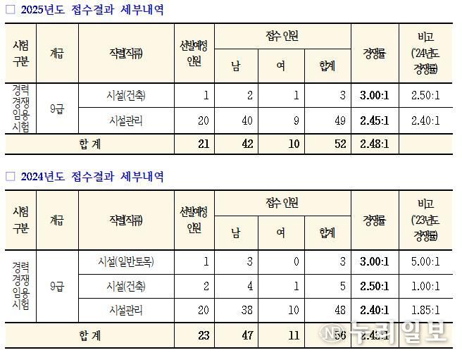 이번 시험에는 △시설_건축(1명 모집) 3명 △시설관리(20명 모집) 49명이 응시원서를 접수했다.