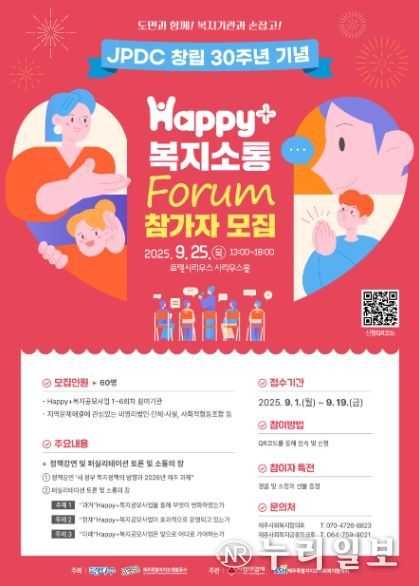 (누리일보) 올해 창립 30주년을 맞아 도민 대상 사회공헌사업을 강화하고 있는 제주개발공사가 지역사회 복지 현안을 발굴하고 해법을 모색하는 토론의 장을 마련한다.