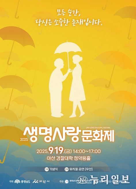 (누리일보) 충남도는 오는 19일 아산 경찰대학교 정약용홀에서 자살예방 인식개선 및 생명존중 문화확산을 위한 ‘2025년 생명사랑문화제’를 개최한다고 4일 밝혔다.