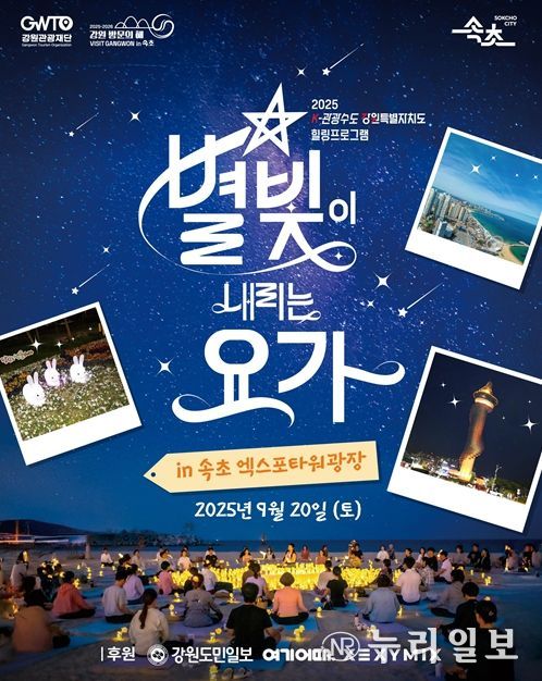 (누리일보) 강원관광재단은 강원 야간관광 활성화를 위해 추진중인 ‘별빛이 내리는 요가’ 프로그램을 9월 20일(토), 속초의 대표 명소인 엑스포타워광장에서 200여 명의 참가자와 함께 개최한다고 밝혔다.