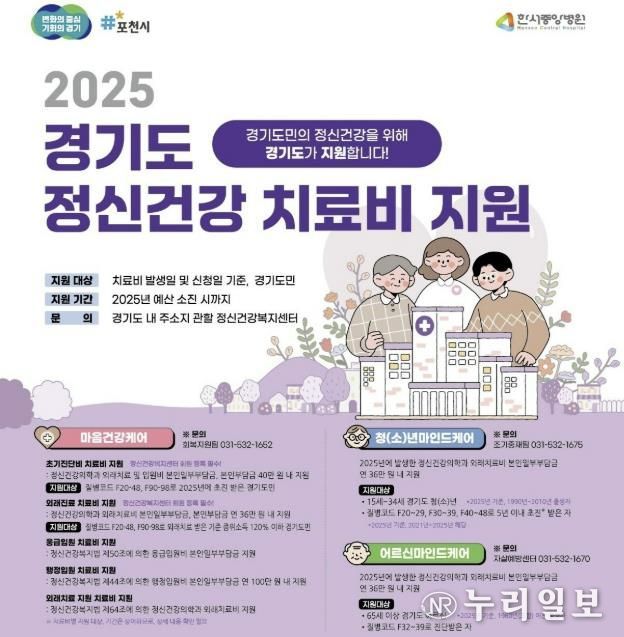(누리일보) 포천시정신건강복지센터는 시민들의 정신건강 회복을 돕고 치료비 부담을 줄이기 위해 ‘마음건강케어’ 치료비 지원사업을 추진한다고 지난 3일 밝혔다.