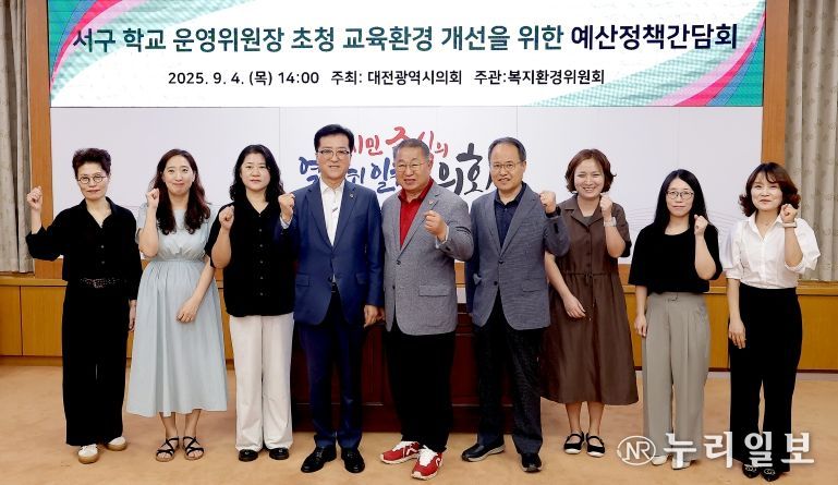 (누리일보) 대전광역시의회 복지환경위원회는 4일 시의회 3층 소통실에서 이한영 의원(국민의힘, 서구6) 주재로 '서구 학교 운영위원장 초청 교육환경 개선을 위한 예산 정책 간담회'를 개최했다.