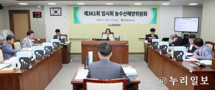 (누리일보) 충남도의회 농수산해양위원회는 4일 제361회 임시회 제1차 회의에서 충남도 남부출장소‧농업기술원 소관 2025년 추가경정예산안과 남부출장소 2025년도 출연계획안을 심사했다.