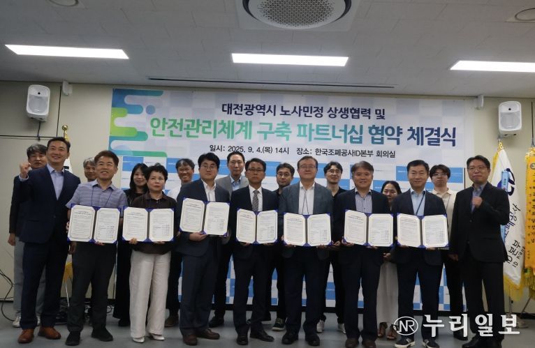 (누리일보) 대전시 노사민정협의회(위원장 이장우 대전시장)는 9월 4일 한국조폐공사 ID본부 회의실에서 '산업재해 예방 안전관리체계 구축 파트너십 공동협약'을 체결했다.