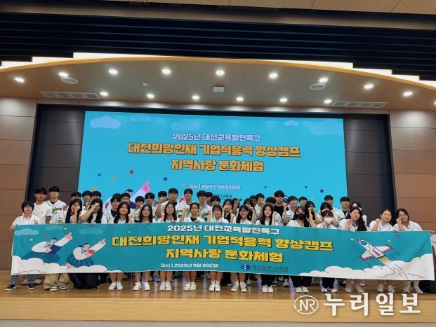(누리일보) 대전시교육청은 9월 8일 충남대학교 융합교육혁신센터와 대전고용복지플러스센터에서 2025년 대전교육발전특구 대전희망인재 50명을 대상으로 기업 적응력 향상 캠프를 실시했다고 밝혔다.