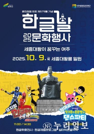 (누리일보) 여주세종문화관광재단은 오는 10월 9일 제579돌 한글날을 맞아 세종대왕릉에서 ‘2025 한글날 문화행사’를 주최한다.