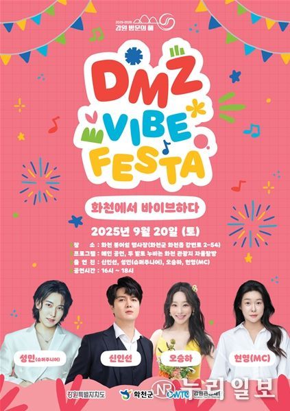 (누리일보) 강원관광재단이 강원특별자치도와 화천군과 함께 접경지역을 모든 세대가 찾는 매력적인 관광지로 만들기 위해 오는 9월 20일 화천군 붕어섬 일원에서 ‘디엠지 감성 축제(DMZ 바이브 페스타)’를 개최한다고 발표했다.