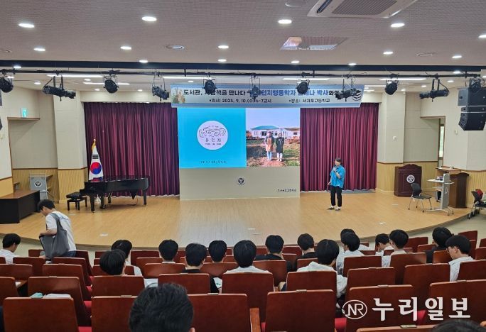 (누리일보) 제주도교육청 서귀포도서관은 10일 서귀포고등학교 천지 학생체육관에서 학교 지원 사업의 하나로 서귀포고등학교와 연계해 ‘사람책을 만나다’ 프로그램을 운영했다.