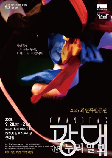 (누리일보) 대전시립연정국악원은 오는 9월 20일 오후 6시와 21일 오후 3시, 양일간 국악원 큰마당에서 국립정동극장 예술단의 전통연희극 ‘광대’를 국악원 회원을 위한 특별공연으로 선보인다.