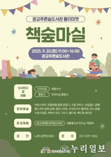 (누리일보) 수원시 광교푸른숲도서관은 9월 20일 오전 11시부터 오후 4시까지 도서관 강당과 로비에서 지역사회와 함께하는 플리마켓 ‘책숲마실’을 개최한다.