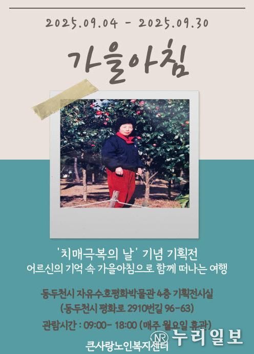 (누리일보) 동두천시 자유수호평화박물관은 큰사랑노인복지센터와 함께 9월 4일부터 30일까지 박물관 4층 기획전시실에서 치매극복의 날을 기념한 기획전시 ‘가을 아침’을 진행하고 있다고 밝혔다.