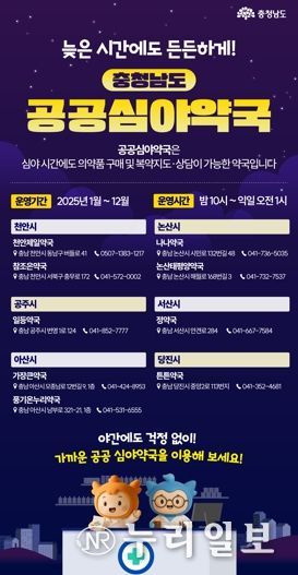 (누리일보) 충남도는 공주시에 야간·심야 시간대 약국 서비스를 제공하는 ‘공공심야약국’ 1곳을 신규 지정했다고 15일 밝혔다.