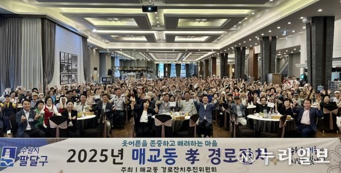 (누리일보) 수원시 팔달구 매교동 경로잔치추진위원회가 주관한 ‘2025 매교동 경로잔치’가 지난 9월 11일 노블레스웨딩컨벤션에서 성황리에 개최됐다. 이번 행사는 10월 추석을 앞두고 매교동에 거주하는 73세 이상 어르신 690명을 모시고 그간의 공로를 인정하고, 감사의 뜻을 전하기 위해 마련됐다.