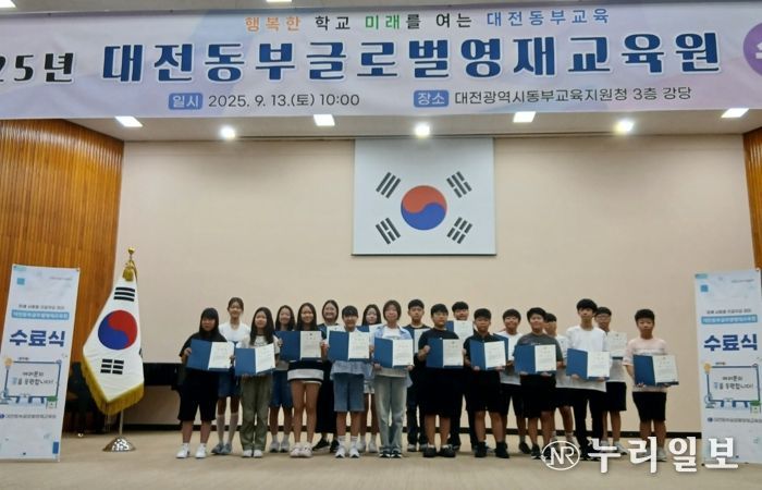 (누리일보) 대전동부교육지원청 산하 대전동부글로벌영재교육원은 9월 13일 대전동부교육지원청 강당에서 학생과 학부모, 지도강사 등 200여 명이 참석한 가운데 ‘2025년 대전동부글로벌영재교육원 수료식’을 개최했다고 밝혔다.