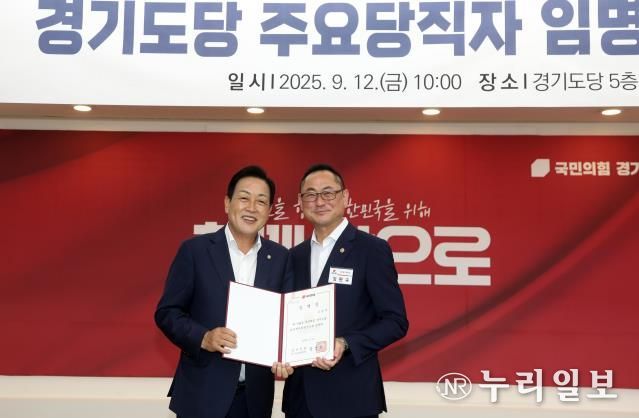 (누리일보) 경기도의회 김완규 의원(국민의힘, 고양12)은 9월 12일 국민의힘 경기도당에서 열린 주요당직자 임명식에서 보건복지위원장에 공식 임명됐다. 김 의원은 이날 임명장을 수여받고, 도민의 복지 향상과 건강권 보장을 위한 책임 있는 역할 수행을 다짐했다.