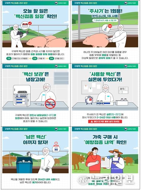 소규모 농가의 경우 시군 공수의사 등 전문 인력을 동원해 접종을 지원하고, 전업 규모 농가는 자가접종을 원칙으로 한다. 다만 고령 등으로 자가접종이 어려운 경우 도 자체사업**을 통해 접종을 지원한다.