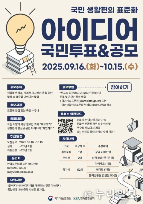 이와 더불어, 2025년 하반기 국민 생활편의 표준화 아이디어 공모전도 함께 진행한다. 국민투표 및 공모전 참여 방법 등에 대한 세부 사항은 국가기술표준원 홈페이지 또는 국민 생활편의 표준화 누리집에서 확인할 수 있다.